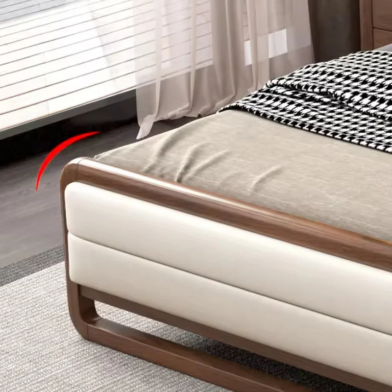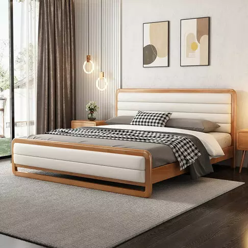 سرير مزدوج بتصميم مودرن معاصر . يتكون السرير من هيكل مصنع من خشب هندسي وخشب زان روماني عالي الجودة، مع تغطية من الجلد الإيطالي المميز والناعم المبطن بإسفنج عالي الكثافة. تضمن هذه المواد راحة فائقة ودعمًا مثاليًا للظهر أثناء النوم.