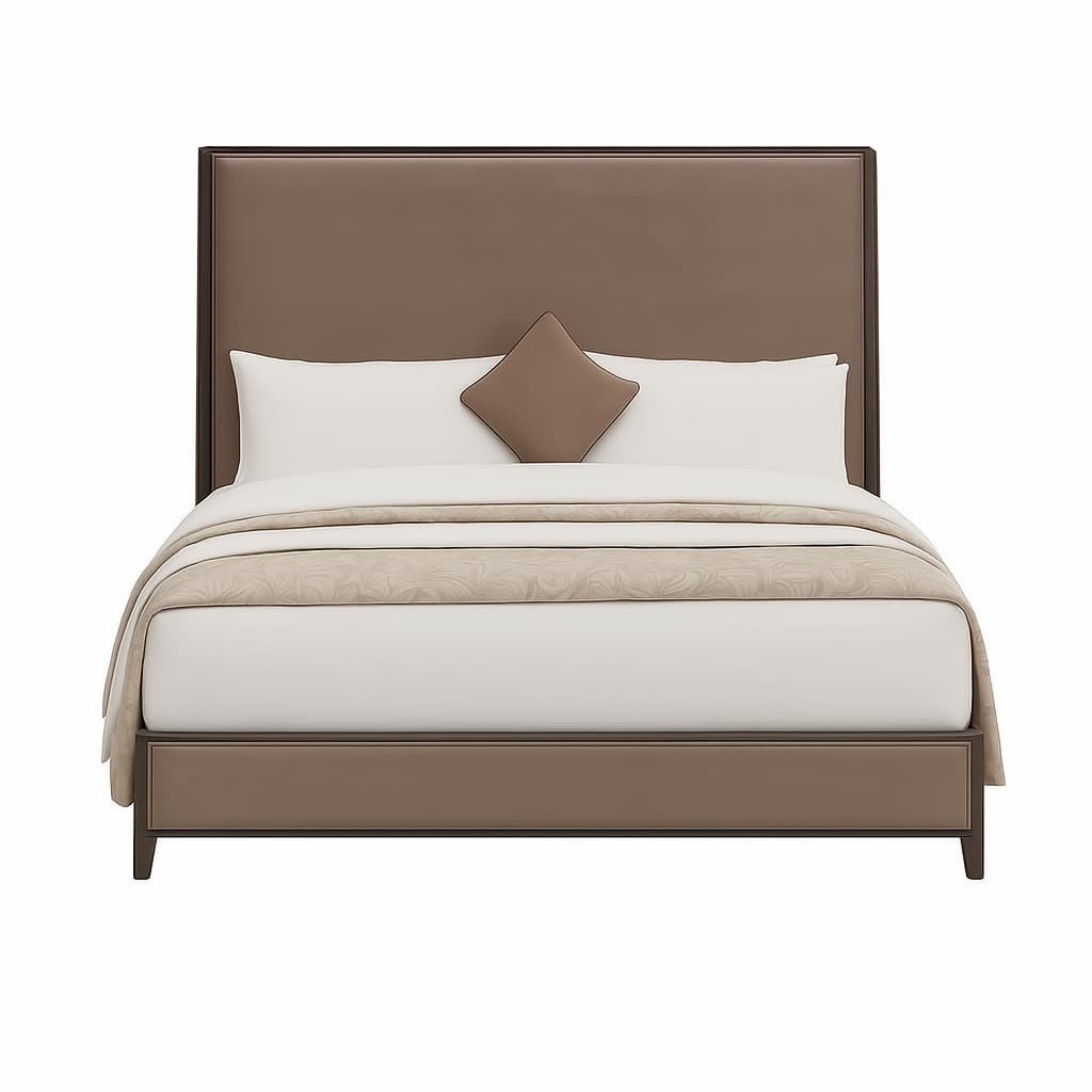 سرير مبطن بتصميم بسيط وألوان توب دافئة يتميز هذا السرير بأناقة هادئة تنسجم مع مختلف أنماط غرف النوم، من خلال تصميمه النظيف والمبطن بالكامل بلون التوب الناعم. تأتي واجهة الرأس المرتفعة بتشطيب ناعم وانسيابي، وتكتمل التفاصيل بغطاء لحاف بنقشة نباتية هادئة تضيف لمسة من العمق، بالإضافة إلى وسادة ديكور متناسقة. خيار مثالي لمحبي الراحة والبساطة والفخامة الهادئة