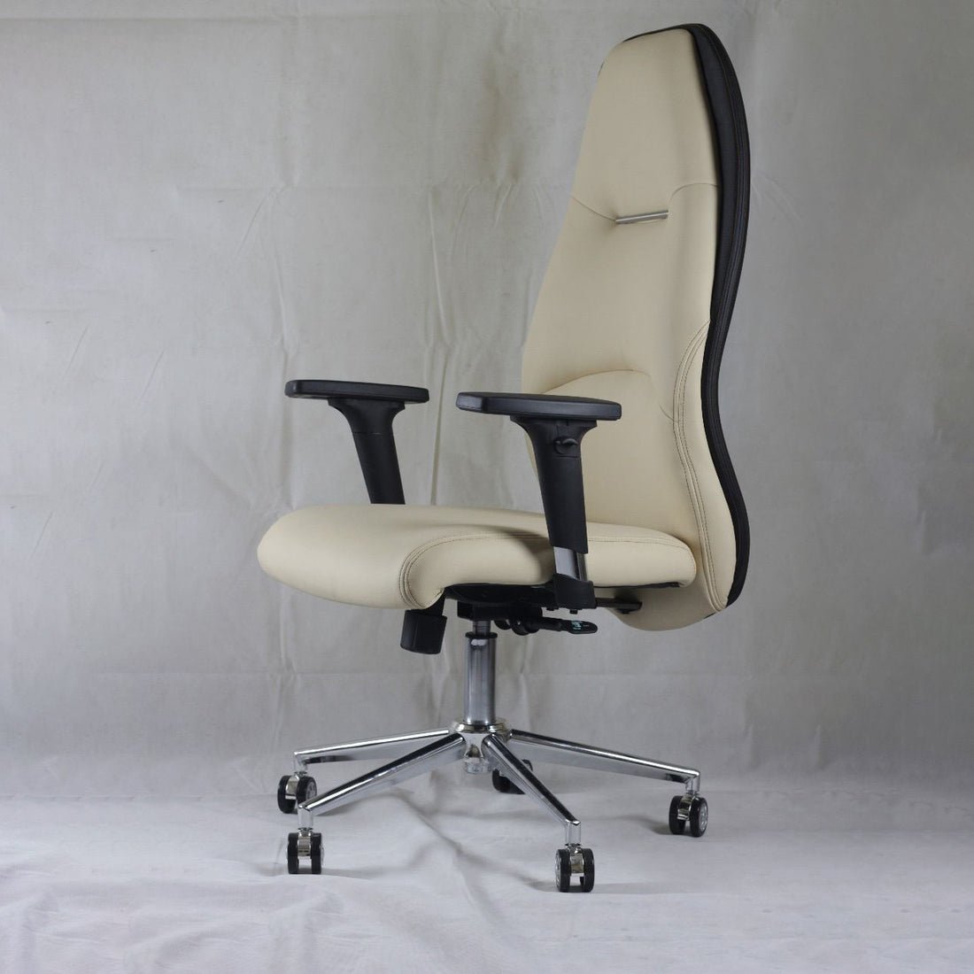 الخامات: جلد عالي الجودة - يد ستيل مع تنجيد - أرجل نجمة خماسية مع عجل لسهولة الحركة